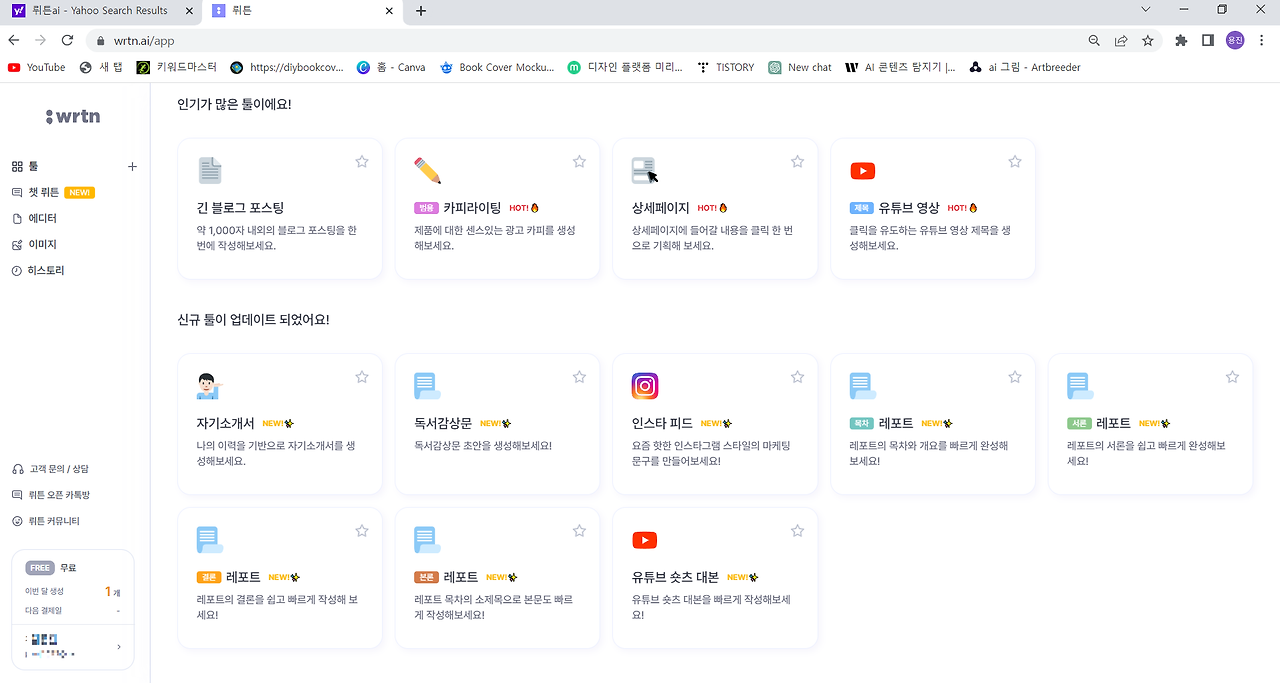 - 다양한 기능 : 블로그 포스팅뿐만 아니라 SNS 콘텐츠, 보고서 작성 등 다양한 용도로 활용할 수 있어요.