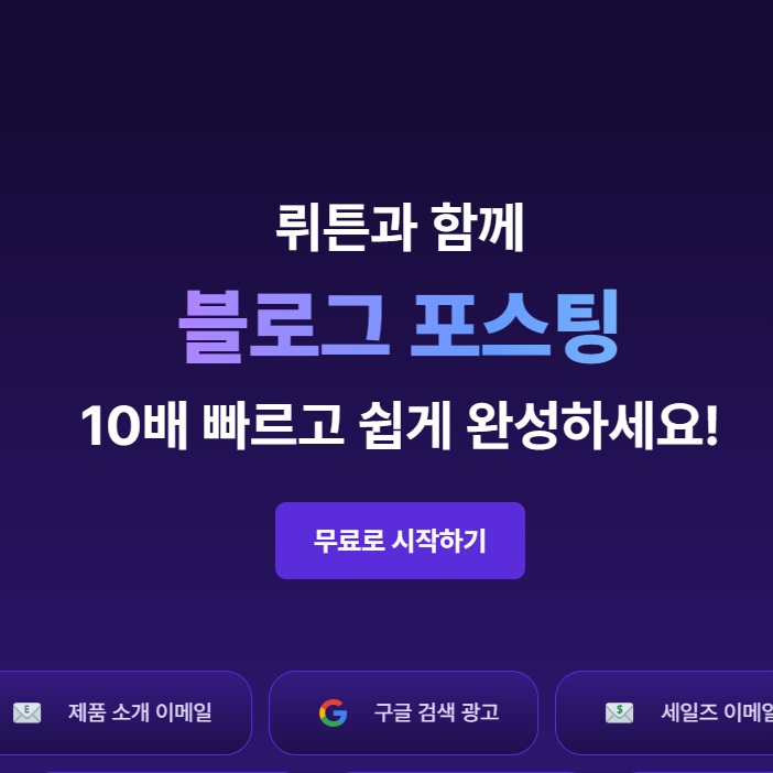 뤼튼은 한국에서 개발된 AI 기반의 콘텐츠 생성 도구로, 사용자가 원하는 주제에 맞춰 글을 작성해 주는 서비스에요. 특히, 블로그 포스팅, SNS 광고, 이메일 마케팅 등 다양한 콘텐츠를 손쉽게 만들 수 있도록 도와주죠. 뤼튼의 가장 큰 장점은 사용자가 원하는 스타일과 톤에 맞춰 글을 작성할 수 있다는 점이에요. 그래서 개인 블로거부터 기업의 마케팅 팀까지 폭넓게 활용할 수 있답니다.