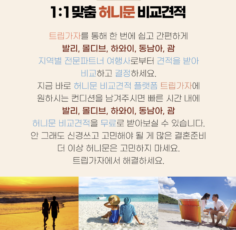 피곤한 당신을 위해 허니문 선택은 편하게 하실 수 있도록 우리 트립가자가 도와드립니다!